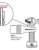 Sendhit has developed a special cap that helps unscrew the valve core nut when it is clogged with sealant. It complements the classic valve core removal cap.