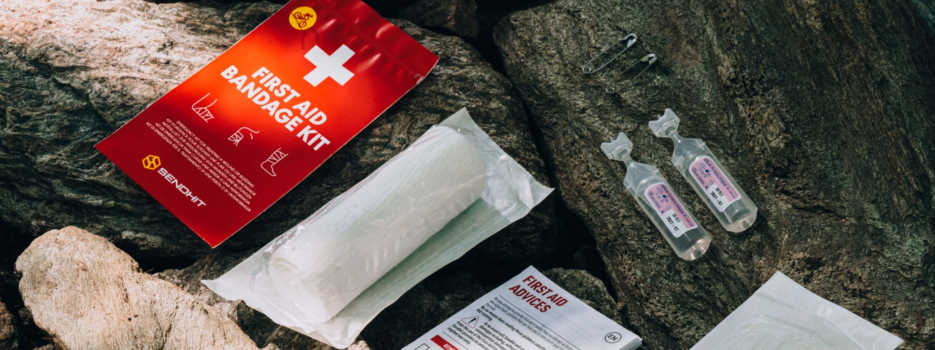 A compact and lightweight MTB first aid kit designed to handle serious wounds and bleeding on the trail. Essential safety gear for mountain bikers and outdoor adventures.